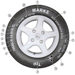 ReifenbezeichnungFür die Reifenwahl ist die bauartbedingte Höchstgeschwindigkeit des Fahrzeuges, sowie die Auflagen und Hinweise im Typenschein des Fahrzeuges und die Last (Lastindex) zu beachten. | |